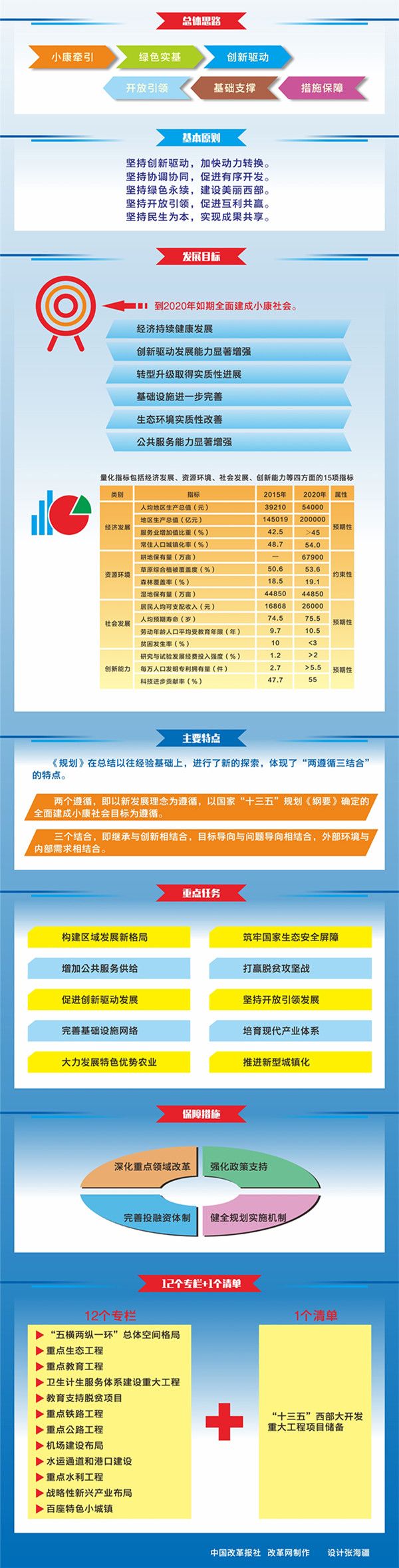 规划指出,“十三五”时期是全面建成小康社会、实现“两个一百年”奋斗目标的第一个百年奋斗目标的决胜阶段。西部地区既是打赢脱贫攻坚战、全面建成小康社会的重点难点,也是我国发展重要回旋余地和提升全国平均发展水平的巨大潜力所在,是推进东西双向开放、构建全方位对外开放新格局的前沿,在区域发展总体战略中具有优先地位。