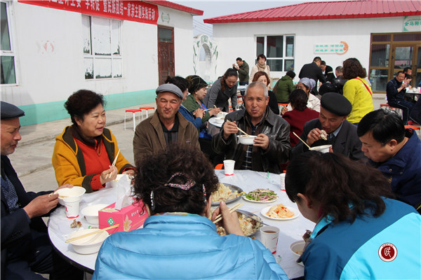 4、昌吉州卫计委干部邀请亲戚们在村活动中心一起同吃一锅饭,共叙友情