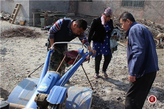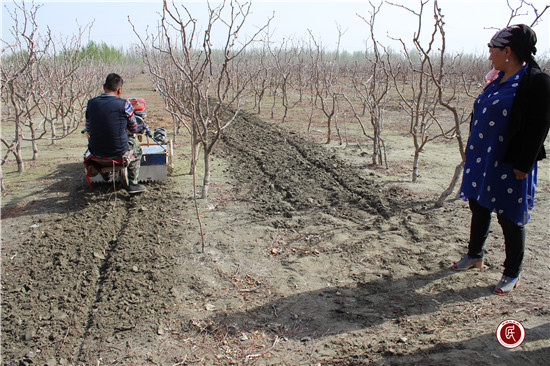 前几日,阿不都外力胡达拜地去检查春耕情况,特地到亲戚牟征辉家地里去看了看,看到别人家都在地里忙的热火朝天,翻地、套种各种农作物,而她家地里一片寂静,没有一点劳作的迹象,他知道牟征辉家里很困难,没有资金、又没有劳力。阿不都外力胡达拜地回来以后就把这件事和爱人说了,商量后夫妇俩决定帮亲戚解决困难。牟征辉的家离哈尼喀村部很远,属于偏远散户,家里承包了20亩枣树,她的丈夫何兴进又在一次交通事故中头部被撞,经过多次治疗,效果不明显,已基本丧失劳动能力,家里还欠了很多外债,生活和劳作重担全落在一个女人身上,20亩枣树根本无力打理。阿不都外力胡达拜地把牟征辉家的情况向驻村工作队队长依斯坎旦进行了汇报,驻哈尼喀村工作队当即表示一同去帮着耕地。2017年4月11日清晨,阿不都外力胡达拜地带着的他的爱人开着拖拉机去了牟征辉承包地,驻哈尼喀村工作队队员也赶到了。为了赶时间,阿不都外力胡达拜地开着自家的拖拉机进了农田就忙活起来,一刻也不停歇,但由于林地面积太大,阿不都外力胡达拜地又自己出费用雇了一辆拖拉机,不一会,另一辆拖拉机轰鸣着开进农田,两台拖拉机轰鸣着好像鸣唱着一首和谐的乐曲,推进的速度也快了很多,经过近6个小时的耕作,20亩地顺利完工。我们当时就“逗”阿不都外力胡达拜地说:“这么远,拖拉机还要干一天的活,得“烧”很多油呀,又花了几百元钱雇拖拉机,这样做值吗?”驻村工作队队长依斯坎旦也说:“你出工就行,油钱和雇拖拉机的钱我们工作队出。”阿不都外力胡达拜地当时就急了:“我是一名党员,又是一名小队长,懂得吃苦在前、共同致富的道理,亲戚家有困难我帮着干点活,出点钱是我应该做的。”牟征辉和他的丈夫何兴进看着犁完平整的林地,兴奋、感激之情溢于言表,牟征辉说:“人误地一时,地误人一年呀,我是一个四川籍务工的人,在这里得到了亲戚一家和工作队这么多帮助,感谢党的好政策,感谢‘民族团结一家亲’活动,我的生活又有盼头了。”