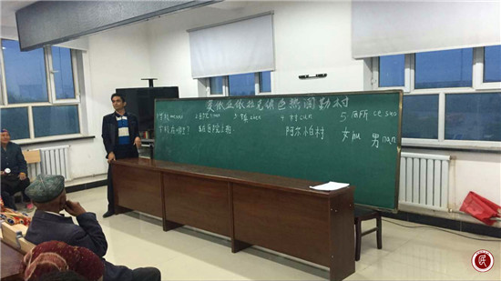 新疆民生网讯 (通讯员 郑晓瑜)4月30日,且末县奥依亚依拉克镇色日阔勒村的“农牧民夜校”课堂中传出一阵阵整齐的朗读声。“你好”、“谢谢”、“不客气”,每位村民都跟着复转军人村官库尔班江认真的学习汉语。