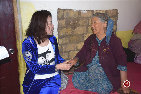 亲戚越走越亲,心也越交越近。一看到亲戚,公司驻乌办主任王淑君就与哈吉热木·阿巴斯姐姐抱在了一起,手拉着手进了房子。屋里的光线有些昏暗,陈设也已经破旧,但相见的喜悦还是瞬间充满了整间屋子。看见王主任带来的面粉和清油,哈吉热木·阿巴斯泪眼婆娑的说:“自从认了这门亲戚后,你总是惦记着我们全家,经常看望并关心我的生活,上个月你来的时候送来了大米,这次来又给我带了面粉,最近我身体状况不太好,等下次一定要让你尝尝我做的拉条子。”临走时王淑君还嘱托老人要注意身体,好好生活,让孩子们经常回家看看,他也会经常来看望姐姐的。