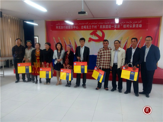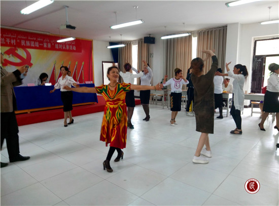 新疆民生网讯 (通讯员 赵新焕)5月5日,阿克苏行政服务中心驻阿克苏市拜什吐格曼乡尤喀克兰干村“访惠聚”工作队连同单位干部职工欢聚在村委会大院,开展了“民族团结一家亲”结对认亲活动,大家欢聚在一起,共唱民族歌、共跳民族舞,增进了“一家人”的情感。
