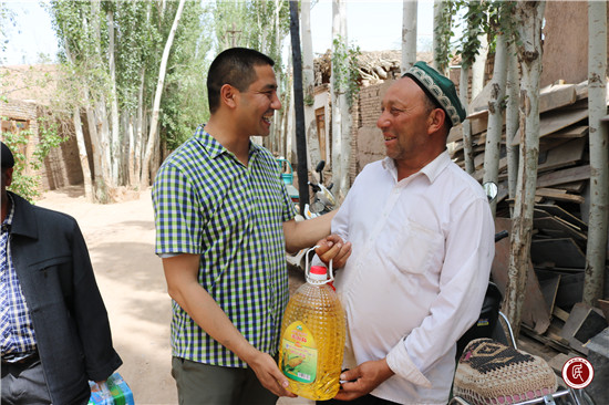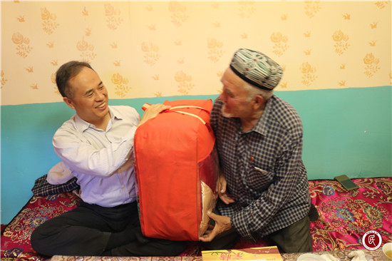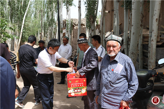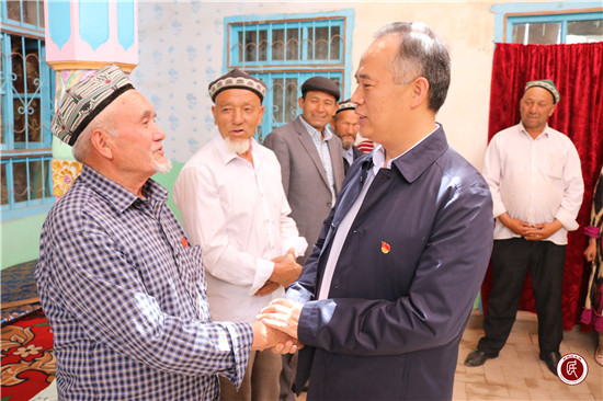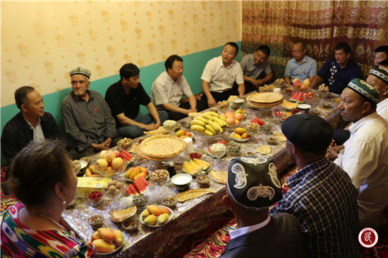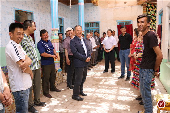 新疆民生网讯 (通讯员 王曙光)五月的喀什骄阳似火,绿树成荫,5月14日上午,喀什大学党委书记吴红展,喀什大学副校长邓勇,组织部部长王栋新及组织部一行数十人在多来特巴格乡党委书记樊清勇,喀什大学第四批“访惠聚”驻兰杆村第一书记、队长木合塔尔·阿布都吾甫尔的陪同下来到兰杆村4组麦日叶木·麦麦提家开展“民族团结一家亲”结对认亲活动。