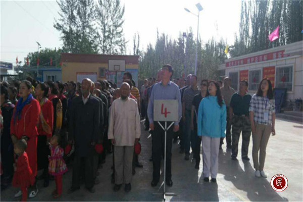 同升一面旗,同唱一首歌。5月15日上午,哈校长同村民、结亲教职工、访惠聚工作队及其他驻村力量共同参升国旗仪式。同唱国歌、同在国旗下宣誓,亲人们更加深刻认识到要同呼吸、共命运,像石榴籽一样紧紧抱在一起。