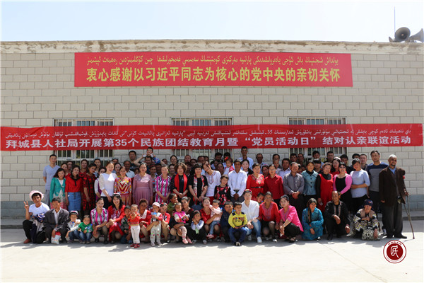 新疆民生网讯 (通讯员 刘滨)5月,是自治区第35个民族团结教育月。拜城县人社局驻拜城县察尔齐镇博孜村工作队联合单位将民族团结教育活动向基层农村延伸,宣讲惠民政策,与村民一起跳舞唱歌、吃饭、游戏互动等,开展了丰富多彩的民族团结融情联谊活动。