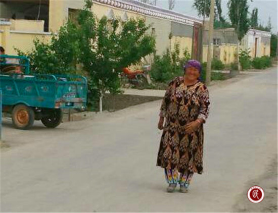 当我们赶往巴哈尔·阿合尼牙孜家时,只见她家的大门敞开着,在院子喊了大妈的名字后,我走进她家客厅,将手中礼品递给大妈,她高兴的接过物品,给了我一个热情的拥抱。还从冰箱拿出准备好的饮料执意要我们喝。我通过手机照片让她了解我的家庭成员情况。通过阿不都的翻译,我得知大妈的女儿女婿去阿拉尔建筑工地打工了,她的老伴艾麦尔·托合提去阿拉尔放羊,家里现在就她和外孙两人,外孙在大队幼儿园上学,她自己在家里种九亩地核桃、红枣和棉花,一年全家打工、放羊、种地可以收入3万多元。听到他们一家人努力生活,我很是欣慰,就向她讲了惠民政策,鼓励她要照顾好家,全家齐心过好日子才是最重要的。大妈也说今后日子会越来越好。离开时她依依不舍得送出家门很远。对此我心里很感动,心想下个月六一再来看看大妈和她小孙子。
