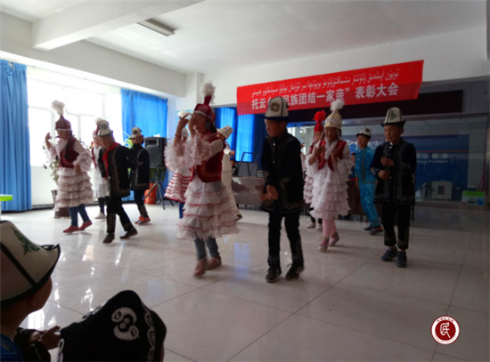 (图为:托云乡小学的学生表演柯尔克孜族舞)