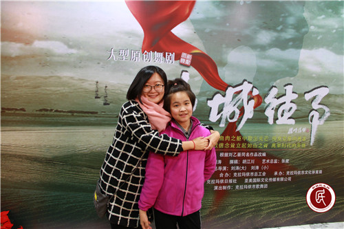 一个半小时的舞剧悄无声息的接近了尾声,王艳和自己的结对亲戚手紧紧挽在了一起,工作队队长王天宇也难掩激动的心情说:“这个舞剧编排的太棒了,邀请你来和我一起看这部剧,有一种回到当年并肩会战的感觉!”对子阿孜古丽·阿不拉江回答道:“我也有这种感觉,这剧又点燃了我的工作激情,而且让我觉得身为克拉玛依的儿女是那么自豪!”