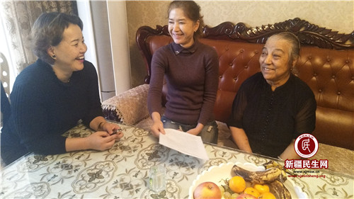 哈尔尼萨老人儿女经常不在身边,身体又不太好。在此后的走访过程中,阿力米来注意到,哈尔尼萨老人经常发呆,也不太爱说话。经过分析,她认为哈尔尼萨老人是独居太久了,孤独寂寥在困扰着老人的精神状况。自此以后,阿力米来每日给老人打电话,把老人当成自己的母亲,和老人一起聊起家常。不仅如此,她还经常带老人参加民族团结联谊活动,带老人外出旅游散心,帮助老人办理住房公积金提取还贷、住院出院手续等生活琐事,成为老人的贴心“小棉袄”。