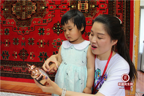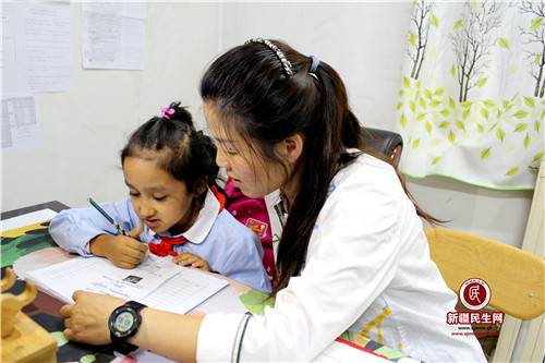 新疆民生网(邵梦博)6月21日,新疆油田公司行政事务中心驻克拉玛依区胜利路街道东风教育社区工作队队员文静还没走进亲戚帕提麦·阿斯木的家门,她的大女儿穆妮赛·库尔班就冲出家门抱住了文静,亲切地说道:“文静阿姨,我想你了……”文静开心地抱起了穆妮赛说:“阿姨也想你了,你看这不是给你带来了数学辅导书。”一边说着一边拉着小穆妮赛走进房间,开始帮助小穆妮赛辅导起了数学功课……