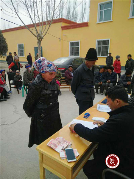 新疆民生网讯(通讯员 阳旭)“阿卡家800元,阿恰家800元……先来签字,按手印,再领钱。”阿克陶县喀热开其克乡阔什都维村村委会主任艾克拜尔冲着大家喊。3月3日中午,阔什都维村在村委会大院举办2016年度加入阿力甫养羊合作社入股分红现场会,全村210户村民共领到了168000万元的分红资金。