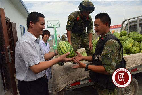 医疗小分队还为执勤官兵送上了饮料、矿泉水、西瓜等慰问品,感谢广大官兵为维护乌鲁木齐社会稳定所付出的艰辛和努力。同时米东区中医医院纪检书记孙文华和医疗小分队专家为执勤官兵进行了义诊活动,并为广大官兵赠送了价值2000元的药品。