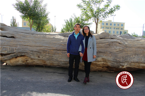 何山与女朋友李红景在胡杨树前执手见证爱情