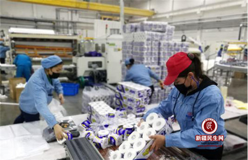 (低收入人口马玲在恒安(昌吉)纸业车间忙碌着)