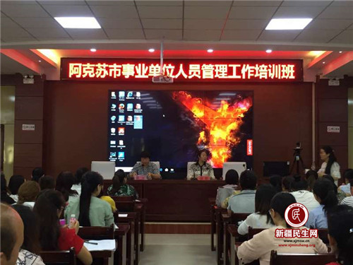 新疆民生网(顾莹)6月22日至23日,阿克苏市人力资源和社会保障局举办为期两天的事业单位人员管理工作培训班,市直各单位分管人事的领导及人事干部共计280余人参加此次培训。
