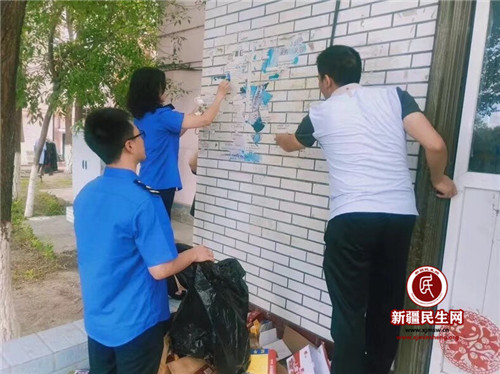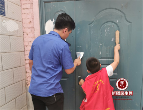 新疆民生网(骆依君 沙依拉)“阿姨你们在干什么呀?”“我们在做家务呀。”“把墙上的纸铲掉也是做家务吗?”“对呀,小区也是我们的家啊。” 原来居住在滨湖小区的小居民浩仪看到的是由区城市管理局与北盛社区组成的志愿者小分队正如火如荼的进行小广告清理工作。
