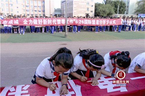 新疆民生网 为进一步落实好毒品预防教育工作,使中小学生深入了解毒品的危害,树立“感恩生命、健康生活”意识,确保校园和家庭无毒品,在第32个“国际禁毒日”来临之际,昌吉市各中小学举行了国际禁毒日主题教育活动。利用宣传条幅版报、讲座、主题班会课、手抄报、签名等形式进行了一系列禁毒宣传教育。通过系列禁毒教育,让同学们进一步了解了毒品的危害,自觉地远离毒品,珍爱生命,增强自我保护的意识。