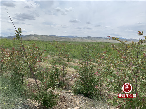 昌吉市自然资源局林业科科员许栓庄:“2019年春季通过义务植树活动新增三工滩生态防护林面积 500亩,主要种海棠,大叶白蜡及白榆、现在有些果树都已经挂果,其中有苹果和桑椹,以后我们还要增加种植面积,增加新的品种,彻底改善三工滩的生态环境,构建昌吉市南部山区的绿色屏障。”