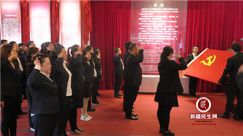 “我志愿加入中国共产党,拥护党的纲领……随时准备为党和人民牺牲一切,永不叛党。”全体党员们举起右拳,向着鲜红的党旗重温入党誓词,铿锵有力的声音在石河子军垦博物馆内久久回荡,深深扎根在每个人的心底。
