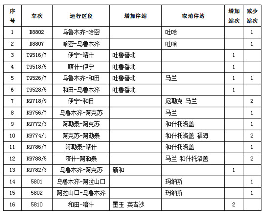 此次调图,还有部分列车停站发生相应变化,共有16趟旅客列车调整停站,具体情况详见附表。