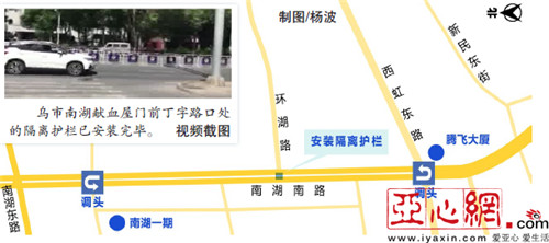 亚心网讯(文/视频记者刘昕通讯员蒋鹏飞)随着乌市南湖献血屋门前丁字路口处的隔离护栏安装完毕,该路口的通行方式也有了相应调整,交警提醒广大驾驶员尽快熟悉新的通行方式。