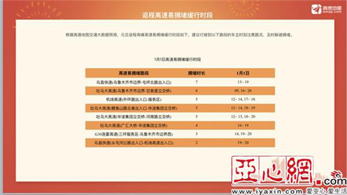 《报告》预计,元旦前12月28日18点至20点为新疆高速出程拥堵高峰;1月1日为返程拥堵高峰,17点至19点拥堵程度较高。