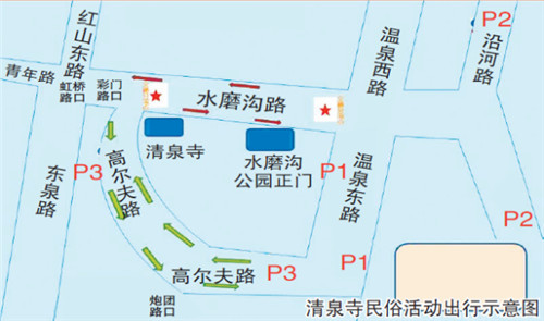 交通管控:高峰时段,水磨沟路将采取两端分流的交通组织措施,行经水磨沟路的车辆请选择由温泉东路、沿河路和高尔夫路绕行。