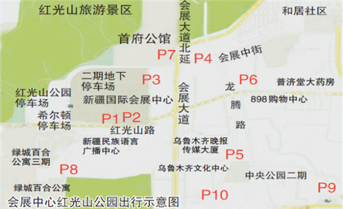高峰时段,警方将适时对红光山路会展大道路口及首府公馆路口的车辆进行交通分流,途经会展中心的车辆,请选择河滩路、龙腾路、会展北路、七道湾路、龙盛街等周边道路绕行。