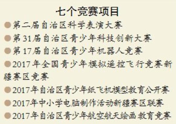 他们将在机器人、航模、科学表演等7个竞赛项目中展开角逐,表现优异者将代表新疆参加国家比赛。