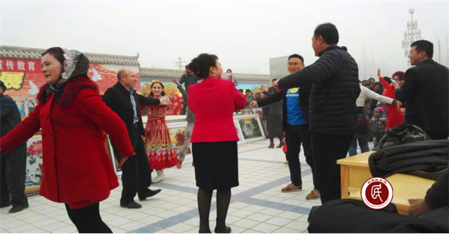 (图为克州人社局干部与妇女们齐共舞)