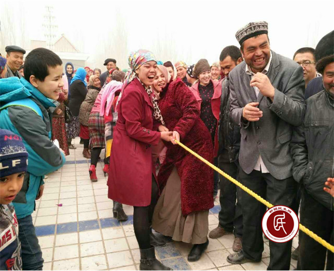 活动以“去极端化”宣讲教育拉开序幕,让村民进一步认识到非法宗教活动的危害,要坚决遏制宗教极端思想的渗透,如今幸福生活的来之不易。文体活动以阿克陶县文工团歌舞表演开场,穿插村民自编自导的舞蹈、自创诗歌朗诵、演讲等赢得全场热烈的掌声,舞台上妇女们穿着艳丽的服装,舞动着婀娜的身姿,动作优美,表情丰富,与专业演员不差分毫,到处洋溢着节日的气息。随后的拔河比赛把活动推到了高潮,现场气氛十分活跃,各族妇女的欢声笑语乐不停。演出接近尾声,克州人社局干部职工和全村各族妇女齐上阵,以一曲欢快的“麦西来甫”结束了本次演出。