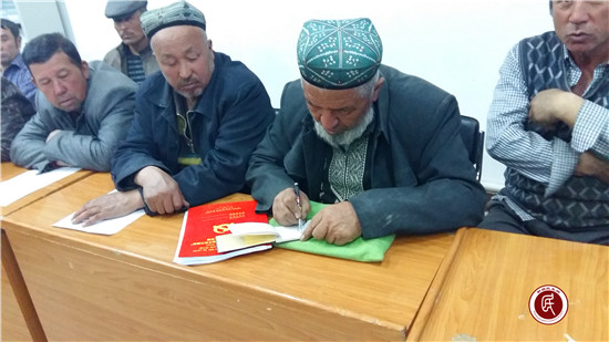 新疆民生网讯 (通讯员 王勇)3月20日晚上8点,阿克苏市依干其乡哈尼喀村会议室灯火通明,原来是哈尼喀村全体党员干部正在第二次深入学习热议习近平总书记十二届全国人大五次会议参加新疆代表团审议时的重要讲话,每个党员都聚精会神,认真做着笔记。