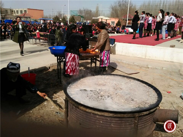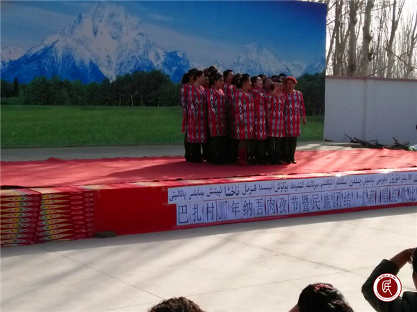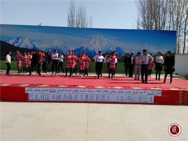 新疆民生网讯 (通讯员 付亚红 田磊)春回大地,万物复苏。3月21日,为了迎接诺肉孜节的到来,阿克苏地区食品药品监督管理局驻拜城县察尔齐镇巴扎村工作队与各族农牧民群众一起用唱“民族团结一家亲”红歌比赛来共同欢庆节日。