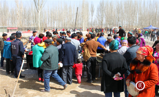 最后,各族干部和村民共同品尝了寓意风调雨顺、幸福美满的诺肉孜饭。做饭的艾拜大叔激动的说:“今年工作队的活动搞的太好了,我做的诺肉孜饭嘛,一会会就没有了,以后嘛,我们还要这样搞,大家在一起嘛热热闹闹的,就像一家人一样,我的心里高兴很呐。”艾拜大叔的话道出了大家的心声。各族干部群众围坐在一起,边吃边聊,其乐融融,讲述着党的恩情和国家惠民政策带来的可喜变化,讲述着自己对幸福生活感慨,讲述着自己身边民族团结的感人故事。话别之时,各族干部和乡亲们依依不舍,其景感人,大家纷纷表示,这样的活动以后应该多多开展。