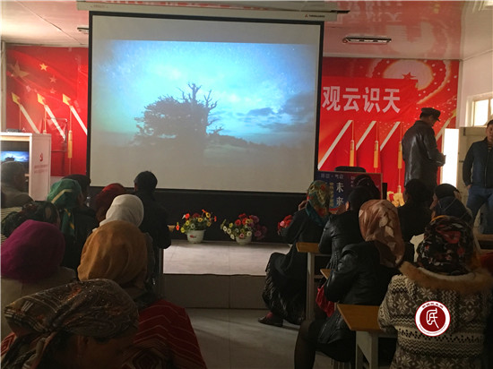 2017年世界气象日的主题是“观云识天”, 科技人员紧紧围绕这一主题,通过播放科普视频、发放宣传资料、到田间地头亲自讲解多种方式让气象科普知识走进千家万户,达到家喻户晓的效果。