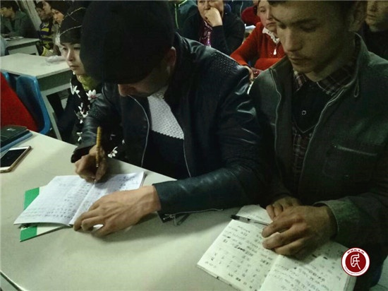 塔合塔村2组的群众阿里木·阿不来提说:“夜校讲的那些知识都很有用,而且讲得课也不死板,我上课也没打瞌睡了。我特别喜欢上次那节讲玉米种植的课,因为我们家种了30亩的玉米,我希望今年收成好点,价格高点。夜校的课一次也没有落下,除了那次我有事去不了,但是我也是让我老婆去学习的。”