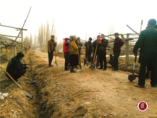 新疆民生网讯 (通讯员 郎小飞)近日,在春耕农忙之即,拜城县政协驻克孜乡墩硝尔村工作队看到村民们都忙在了田间地头,为了能结合村民们的实际劳动工作完成好为群众办实事的问题,“访惠聚”工作队队员在走访中改变了工作方式,积极融入群众中,与当地村民共同开展劳动、共同学习,以实际行动做到帮忙不添乱、宣传要到位、诉求能体现、信息能掌握的工作要求,使每位工作队员练就磨刀不误砍柴功的本领,受到村民的赞赏。