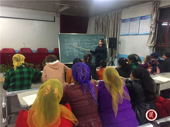 村民热孜万古丽·吐尔逊热情地拉着工作队成员阿斯古丽的手说:“现在是农闲时间,晚上在家也是没事干,工作队、村委会组织的这个农牧民夜校非常好,既可以学到各方面的知识,又提高了我的国语水平,还可以和大家交流,我很喜欢。”通俗易懂的语言拉近了与群众的距离,增强群众的科技意识、发展意识、创新意识。同时在帮扶措施上下功夫,建立联动机制,因地制宜地实施项目,激发了农民群众打赢脱贫攻坚的信心和决心。