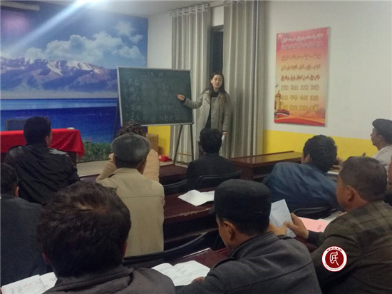 新疆民生网讯 (通讯员 王聪)“您好!”“你吃饭了吗?”“我叫阿里木,……”拜城县布隆乡牙斯热木库鲁奇村村委会传来了一阵阵朗读声,原来是村 “双语”培训班开始授课了。