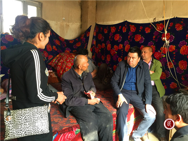 新疆民生网讯 (通讯员 李孟秋)近日,春风中带有丝丝寒意、天空中飘着浮尘,仍然挡不住阿克苏市喀拉塔勒镇英买里村工作队开展走访入户工作的步伐 。早在三月初,“访惠聚”工作队刚驻村不久,就听村干部说过村民赛买提·肉孜家的困难,夫妻俩人均患有结核病多年,因常年患病导致家中贫困,平日靠低保维持生活。