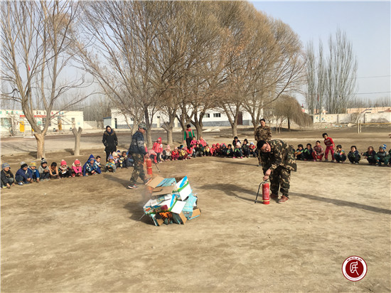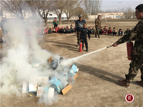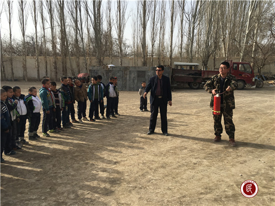 新疆民生网讯 (通讯员 王江朋、李增华)春季气候干燥,刮风较多,是火灾的高发期,学校人员密集,发生火灾后果不堪设想,对学生们进行消防知识讲解和消防器材正确使用是十分重要且必要的。自治区地矿局支教干部李增华曾是一名安全员,每年都负责单位员工的消防知识培训和组织消防演练。同样的演练工作,不同的是地点变成了学校,对象变成了学校的孩子们。
