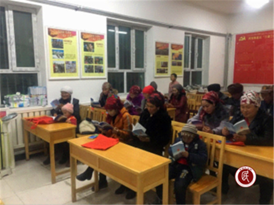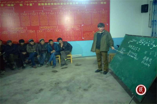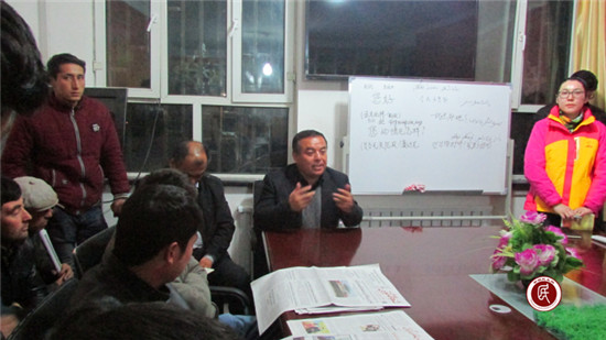 (图:州政办驻加马铁热克乡赛克孜艾日克村工作队开展“双语”学习教育。)
