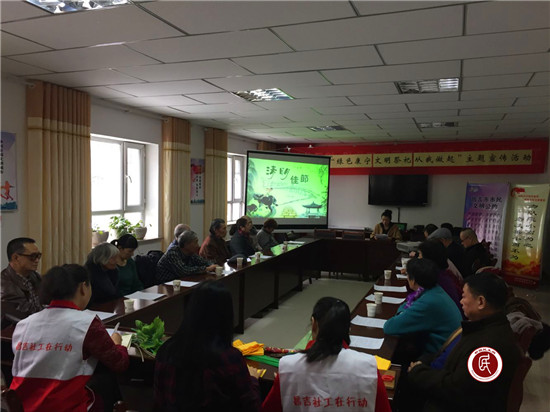 新疆民生网讯 (通讯员 毛俊强)在清明节来临之际,为助力昌吉市创建全国文明城市,在辖区形成文明祭祀的良好风尚,营造“文明祭祀 绿色清明”的良好氛围。2017年3月27日上午,驻昌吉市延北街道康宁社区工作队、社区工作人员与汇同社工一道在社区居委会开展了以“绿色康宁 文明祭祀 从我做起”为主题的宣讲活动,引导社区居民度过一个文明绿色的清明节。