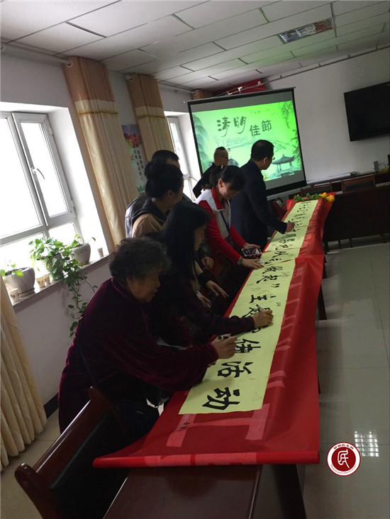 在活动中,工作队、社区汇同社工通过多种方式呼吁广大居民共同行动起来,文明祭祀,从我做起。首先,通过PPT展示,讲解了清明节的由来及传统节日的习俗;其次,工作队队员和社区工作人员与居民一起现场手工制作了菊花,倡导节俭、绿色的祭扫行为;再次,向居民发起共同文明祭祀的倡议,在促进社会文明进步中带好头、作表率,从我做起,并邀请居民在宣传横幅上签字;最后,大家以默哀的方式向革命先烈致敬,感谢先烈们用生命和鲜血换来我们今天的幸福生活!