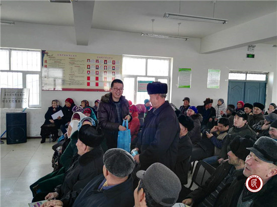 为减少布病高危人群的发病率,提高其自我保护意识和防治知识水平,工作队充分发挥自身优势,用汉、哈双语开展了布病防治知识讲座,为活跃讲座气氛,检验牧民们对布病防治知识的掌握程度,讲座过程中还开展了互动有奖问答环节。讲座结束后,工作队联系州、市疾控中心专业技术人员,对村里的高危人群进行信息登记,发放布病的防治常识手册,免费为全村156名村民做了布鲁氏杆菌病筛查采血检测。