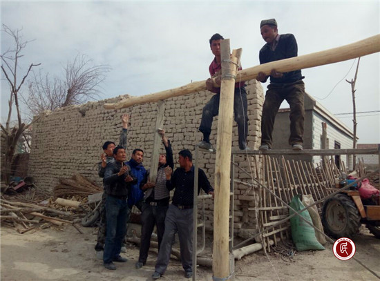 近日,访惠聚工作队在入户走访中,看到一群忙碌的村民,抬木头、搬梯子、打桩子,大家忙的不亦乐乎,原来这是村民艾买提江在自家院子里准备搭葡萄架,来帮忙的全部是左右邻居。受这种气氛的感染,我们队友们也放下手中事情,不由自主的加入到他们的队伍中,帮他们抬木头、接绳子,大家齐动手,仅用了半天时间,艾买提江家的葡萄架搭好了。大家开心的说本来计划一天干完的活,在工作队的帮助下,半天就干完了。