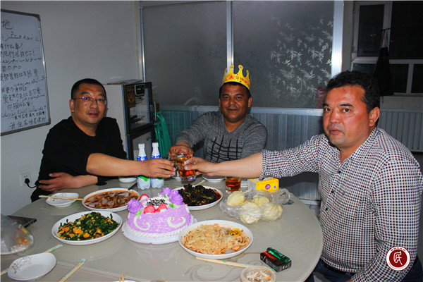 今年2月1日,为了让汉族驻村干部能在家过春节,他主动提出跟着工作队依斯坎旦队长来到依干其乡哈尼喀村,尽快的熟悉了村里的工作,各项工作都是忙里忙外,做了很多具体工作。3月28日是他的生日,队友们默默记在心里。在他值班的时候,队友们商量好悄悄下厨加了两道菜,托人买来一个蛋糕。当我们把他唤回来吃饭的时候,让他点蜡烛的一刹那,他才恍然大悟,原来是队友们特意为自己准备的生日“宴”,四个菜和一个蛋糕,激动的心情溢于言表。简单吃了一块蛋糕、吃了几口饭,他又匆匆忙忙的回到了值班岗位上。