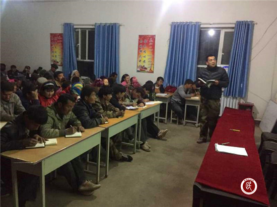 阿克苏地区人社局驻温宿县古勒阿瓦提乡博斯坦托格拉克村工作队围绕师资调配、课程设计、教材建设等环节,分批次、分阶段开展培训,做到每周至少1次、每天至少2小时,每年不少于50课时,努力把驻村点的“农牧民夜校”主体作用发挥出来,打造出真正符合群众需求的示范夜校。