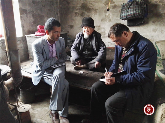 新疆民生网讯 (通讯员 吴建)3月28日上午,阿克苏地区畜牧局驻拜城县温巴什乡阿瓦提村驻村工作队入户走访贫困户及孤寡老人,详细记录他们的困难诉求,在党和国家的惠民政策下携手脱贫致富奔小康,让所有孤苦老人,老有所依,老有所养。