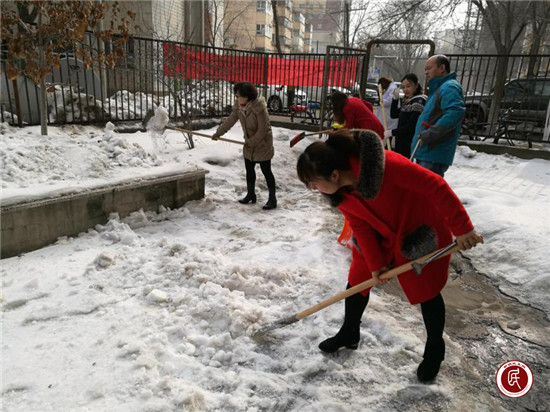 另一组负责清理辖区主要巷道、居民房前屋后、道路两旁林带等,主要对积雪垃圾等进行彻底清除,对无人管理小区进行重点清理。